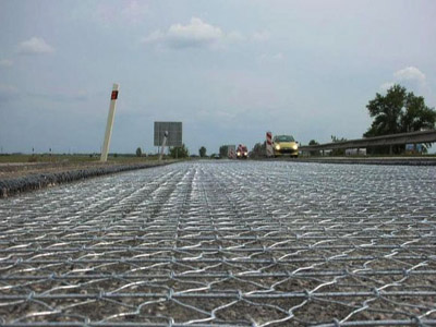 1.加緊網片是指編織鐵絲網的時候,在垂直或平行于編織長向,加入與六角網絲同材質的鋼絲的網片。加筋六角網片的拉伸強度高于普通六角網的網片,加筋絲直徑一般不小于邊絲直徑。安裝到路基上,尤其當基礎張應力很高的情況下,它能吸收并從根本上減弱有裂縫或交通而產生的張應力縫值。